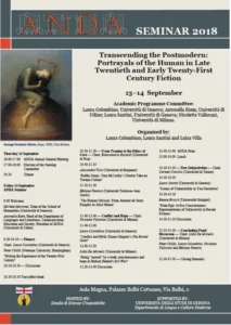 - Events 2018ANDA SEMINAR 2018. Transcending the Postmodern: Portrayals of the Human in Late Twentieth and Early Twenty-First Century Fiction. 13–14 September, Aula Magna, Palazzo Balbi Cattaneo, Via Balbi 2, Università degli… Leggi tutto: Events 2018